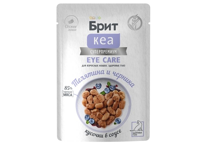 Brit Care Eye Care Паучи Брит Кеа для кошек Здоровье глаз Телятина и черника (цена за упаковку) 85г х 12шт
