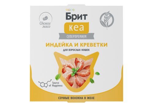 Вся линейка паучей и ламиcтеров Брит Кеа "Волокна в желе" построена на индейке как основном белке, с добавками разных морепродуктов. Это уникальная фишка линейки — моно-белковый состав на базе индейки + сочные волокна и желе, обогащенные спирулиной и таурином, создающие функциональное лакомство для взрослых кошек и котят. Аппетитная формула с индейкой и морскими креветками подходит даже самым привередливым кошкам. Особенности: источник полноценного белка и таурина; улучшает обмен веществ и иммунитет; поддержка пищеварения благодаря волокнам и желе; обогащено природными антиоксидантами.