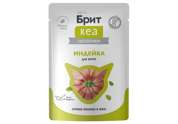 Вся линейка паучей и ламиcтеров Брит Кеа "Волокна в желе" построена на индейке как основном белке, с добавками разных морепродуктов. Это уникальная фишка линейки — моно-белковый состав на базе индейки + сочные волокна и желе, обогащенные спирулиной и таурином, создающие функциональное лакомство для взрослых кошек и котят. Мягкий и полезный корм для котят с мясом индейки подходит для первого прикорма и чувствительных малышей. Особенности: монопротеиновый состав снижает риск аллергий; оптимален для пищеварения на этапе роста; спирулина поддерживает иммунитет; текстура желе облегчает переход к твердой пище.