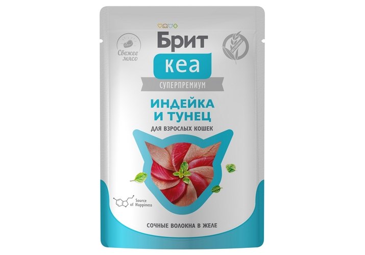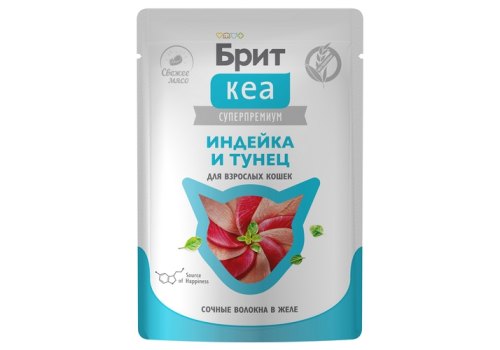Вся линейка паучей и ламиcтеров Брит Кеа "Волокна в желе" построена на индейке как основном белке, с добавками разных морепродуктов. Это уникальная фишка линейки — моно-белковый состав на базе индейки + сочные волокна и желе, обогащенные спирулиной и таурином, создающие функциональное лакомство для взрослых кошек и котят. Вкусное и питательное дополнение к рациону на основе индейки и тунца. Идеально для поддержания активности. Особенности: тунец — источник Омега-3 и таурина; легкое усвоение и высокая поедаемость; поддержка ЖКТ и метаболизма; добавлена спирулина — антиоксидант и стимулятор иммунитета.