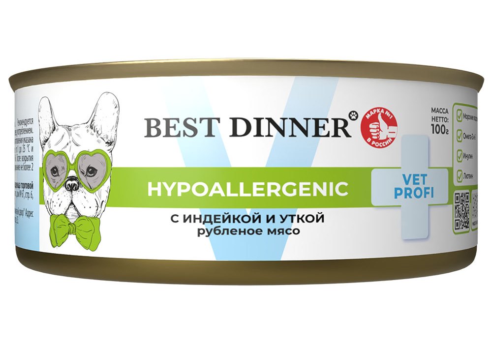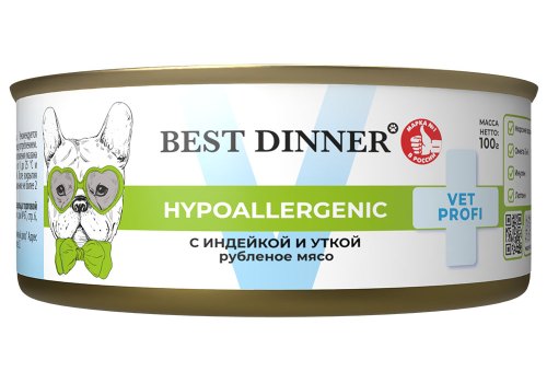 Best Dinner Vet Profi Hypoallergenic Диетический корм Бест Диннер для собак с Индейкой и уткой (цена за упаковку) 100г х 12шт