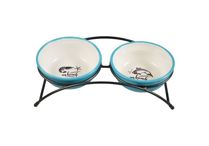 Mr.Kranch Миски на подставке для собак и кошек Двойные 290мл х 2 шт Голубые