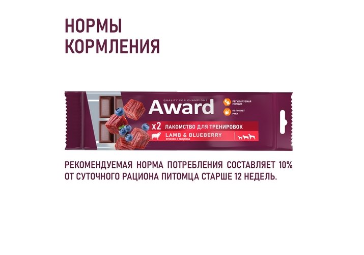 Award Лакомство Авард для тренировок для собак и щенков с 3 месяцев с ягненком и голубикой 50 г