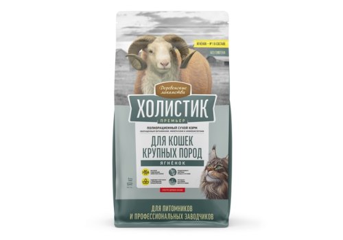 Деревенские лакомства Холистик Премьер Сухой корм для кошек Крупных пород с Ягненком 10 кг