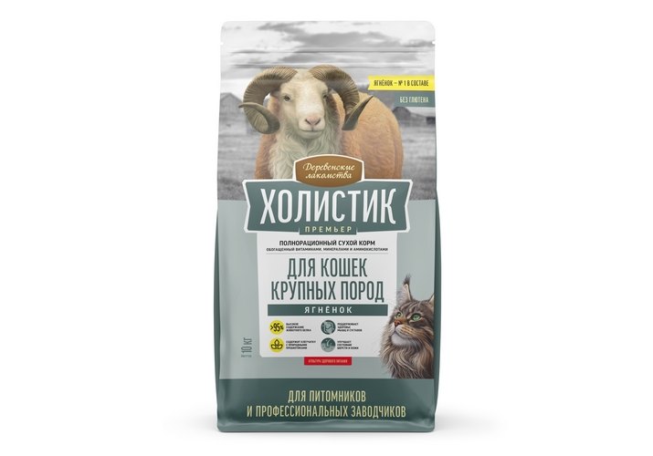 Сухой корм для кошек «Холистик Премьер» — это в первую очередь забота о здоровье вашего питомца. Мы предлагаем продукцию суперпремиум-класса нового поколения. Идеально сбалансированные рецепты учитывают основные принципы полнорационного питания кошек. Каждый прием пищи — это поддержка ее иммунной системы, кожи, шерсти и пищеварения.Полнорационный и идеально сбалансированный корм «Деревенские лакомства Холистик Премьер для кошек крупных пород. Ягненок». разработан с учетом физиологических особенностей и потребностей питомцев. Высококачественный белок, витамины, минералы и жирные кислоты обеспечивают кошку всем необходимым для поддержания великолепной физической формы, здоровья суставов и костей, блестящей шерсти, а также отличной работы сердца.