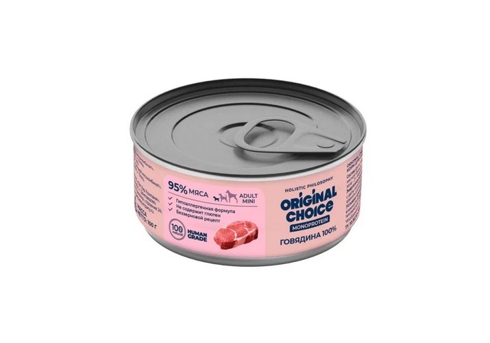 Original Choice Monoprotein Adult Mini Влажный корм Ориджинал Чойс для собак мелких пород Говядина 100% (цена за упаковку) 100г х 12шт