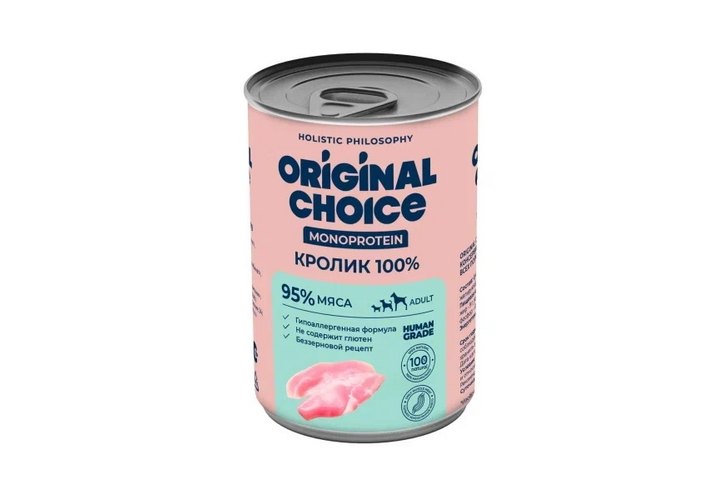 Original Choice Monoprotein Adult Влажный корм Ориджинал Чойс для собак всех пород Кролик 100% (цена за упаковку) 340г х 6шт