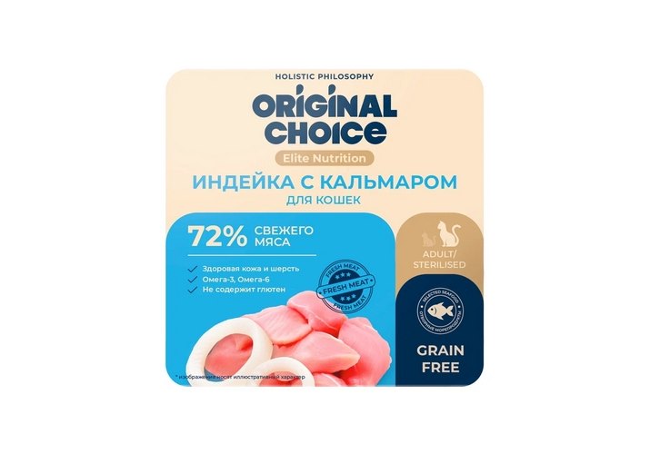 Откройте удивительный мир вкуса и заботы о Вашем питомце с ORIGINAL CHOICE Elite Nutrition Adult! Этот изысканный корм содержит нежное филе индейки и кальмара в аппетитном желе.