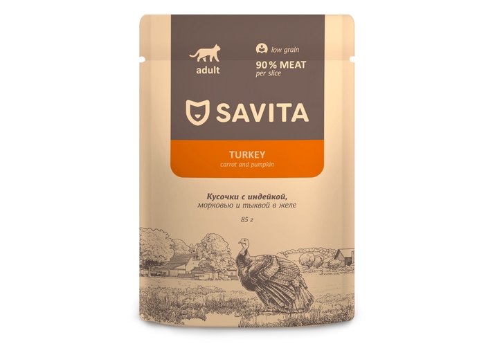 Savita Влажный корм Савита для кошек с индейкой и овощами в желе (цена за упаковку) 85г х 12шт