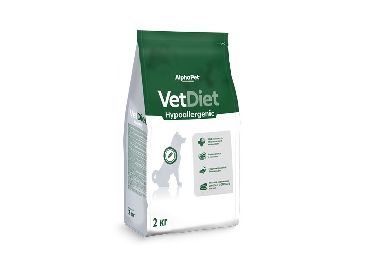 AlphaPet Vet Diet Hypoallergenic Диетический корм АльфаПет для взрослых собак всех пород при Пищевой аллергии и непереносимости ингредиентов 2 кг