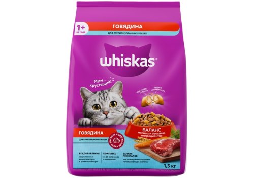 Whiskas Sterilised Beef Сухой корм Вискас подушечки для стерилизованных кошек Говядина 1,3 кг