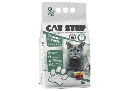 Cat Step Compact White French Soap Наполнитель Кэт Степ для кошачьего туалета комкующийся Минеральный с ароматом Французского мыла 5 л