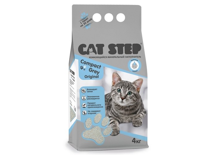 Cat Step Compact Grey Original Наполнитель Кэт Степ для кошачьего туалета комкующийся Минеральный 4 кг