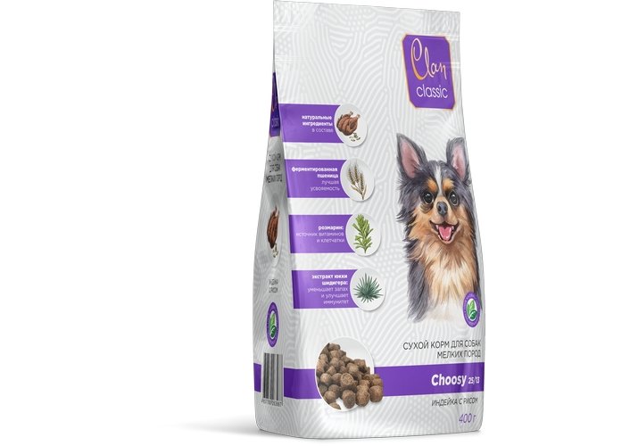 Clan Classic Delicious 25-13 Сухой корм Клан для собак Мелких пород Индейка рис 400 г
