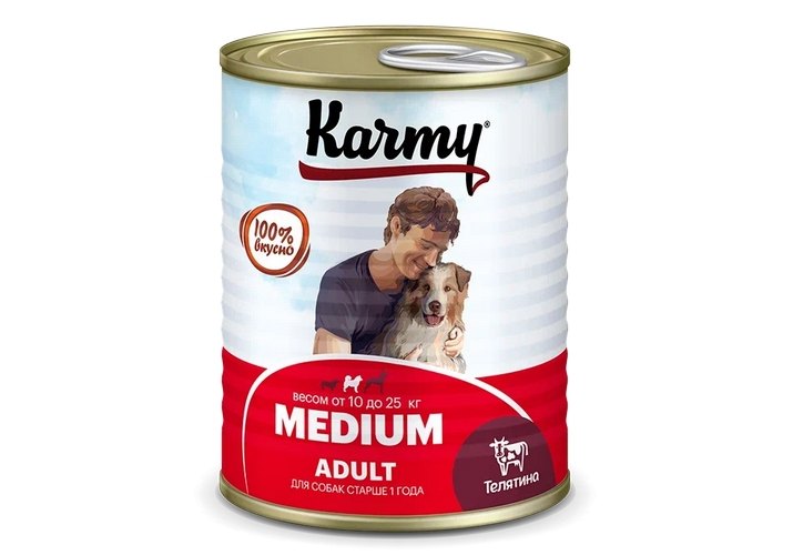 Karmy Medium Adult Консервы Карми для взрослых собак средних пород с телятиной (цена за упаковку) 340г х 12шт