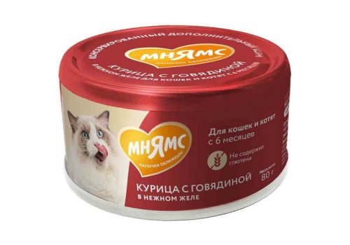 Мнямс Влажный корм для кошек и котят старше 6 месяцев Курица с говядиной в нежном желе (цена за упаковку) 80г х 24шт