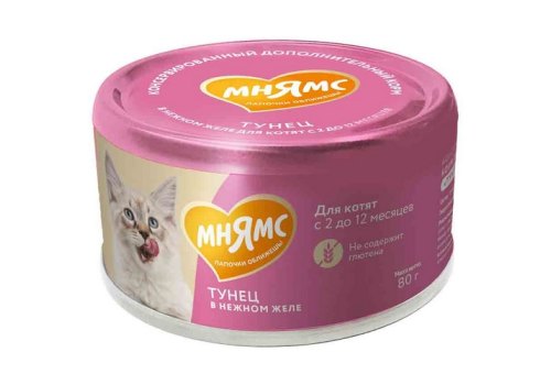 Мнямс Влажный корм для кошек и котят Тунец в нежном желе (цена за упаковку) 80г х 24шт