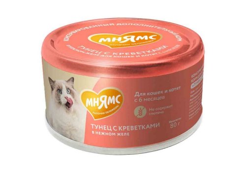 Мнямс Влажный корм для кошек и котят старше 6 месяцев Тунец с креветками в нежном желе (цена за упаковку) 80г х 24шт