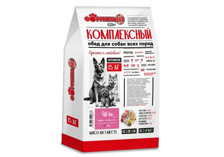 Формула 365 Комплексный обед Сухой корм для взрослых собак мини и средних пород Индейка кролик и рис 15 кг