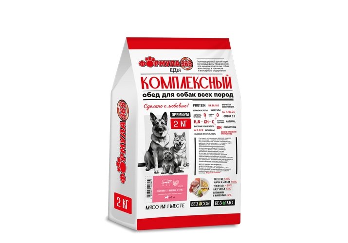 Формула 365 Комплексный обед Сухой корм для взрослых собак крупных пород Телятина Индейка и рис 2 кг