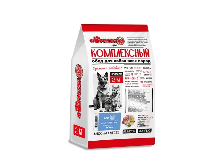 Формула 365 Комплексный обед Сухой корм для взрослых собак средних пород Лосось Индейка и рис 2 кг