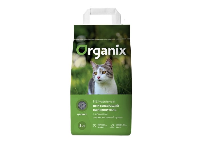 Гранулы наполнителя Organix созданы из пористого минерала на основе цеолита, который обладает высокой абсорбирующей способностью и препятствует распространению неприятного запаха. Наполнитель быстро впитывает влагу и препятствует разложению болезнетворных организмов. Гранулы не пылят и не прилипают к лапкам и шерсти животного. При намокании раскрывается приятный аромат свежескошенной травы.