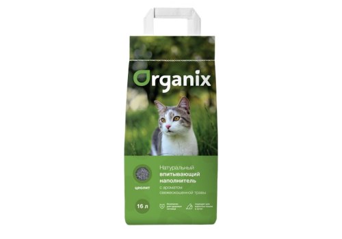 Гранулы наполнителя Organix созданы из пористого минерала на основе цеолита, который обладает высокой абсорбирующей способностью и препятствует распространению неприятного запаха. Наполнитель быстро впитывает влагу и препятствует разложению болезнетворных организмов. Гранулы не пылят и не прилипают к лапкам и шерсти животного. При намокании раскрывается приятный аромат свежескошенной травы.