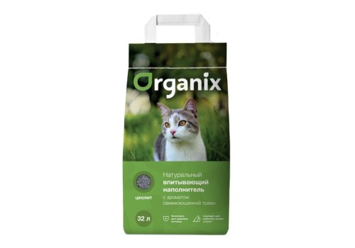 Гранулы наполнителя Organix созданы из пористого минерала на основе цеолита, который обладает высокой абсорбирующей способностью и препятствует распространению неприятного запаха. Наполнитель быстро впитывает влагу и препятствует разложению болезнетворных организмов. Гранулы не пылят и не прилипают к лапкам и шерсти животного. При намокании раскрывается приятный аромат свежескошенной травы.