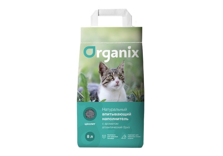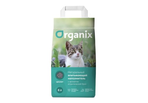 Гранулы наполнителя Organix созданы из пористого минерала на основе цеолита, который обладает высокой абсорбирующей способностью и препятствует распространению неприятного запаха. Наполнитель быстро впитывает влагу и препятствует разложению болезнетворных организмов. Гранулы не пылят и не прилипают к лапкам и шерсти животного. При намокании раскрывается приятный аромат атлантического бриза.