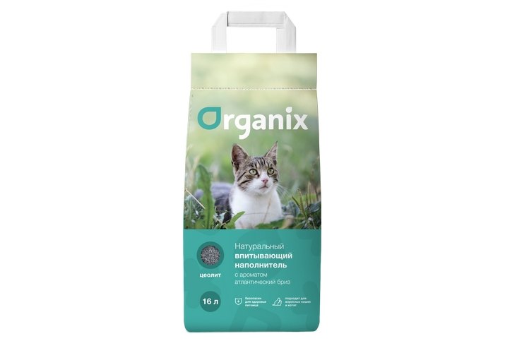Гранулы наполнителя Organix созданы из пористого минерала на основе цеолита, который обладает высокой абсорбирующей способностью и препятствует распространению неприятного запаха. Наполнитель быстро впитывает влагу и препятствует разложению болезнетворных организмов. Гранулы не пылят и не прилипают к лапкам и шерсти животного. При намокании раскрывается приятный аромат атлантического бриза.