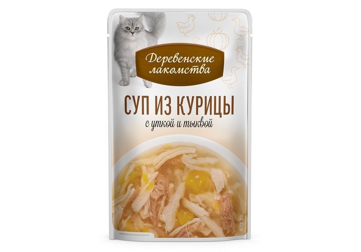 Деревенские лакомства Суп для кошек из Курицы с уткой и тыквой (цена за упаковку) 35г х 4шт