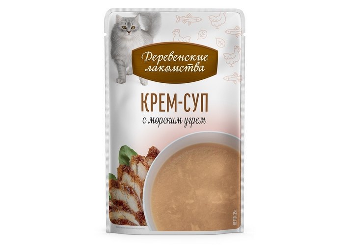 Деревенские лакомства Крем-суп для кошек для кошек с Морским угрём (цена за упаковку) 35г х 4шт
