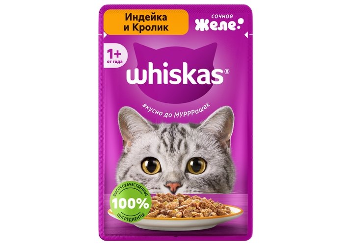 Это сбалансированный рацион, приготовленный именно так, как любит ваша кошка. Отборные мясные кусочки с индейкой и кроликом в аппетитном желе придутся по вкусу вашей любимице. Рацион Whiskas® содержит все необходимое, чтобы еда вашей кошки была не только вкусной, но и полезной. Whiskas® поддержит иммунитет, позаботится о здоровом пищеварении и здоровье кожи и шерсти вашей кошки. Подходит для стерилизованных котов и кошек.