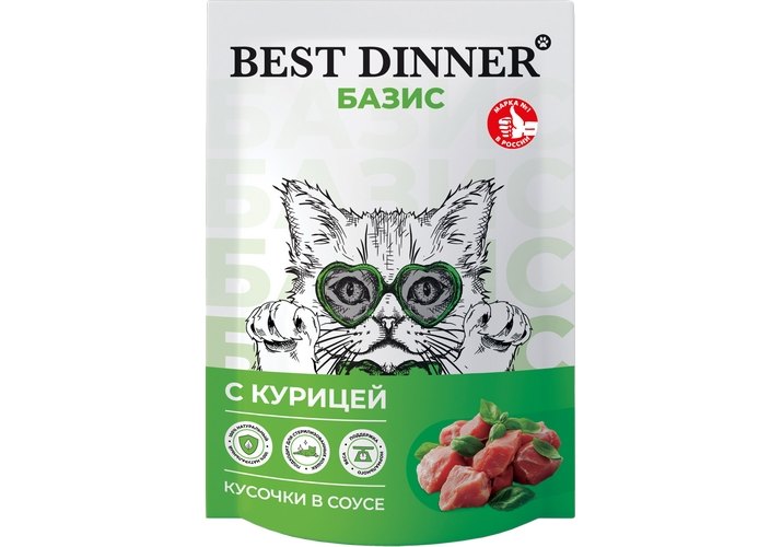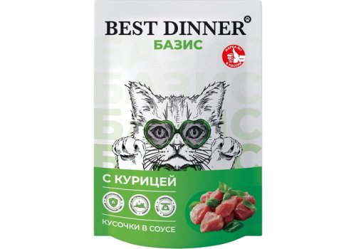 Best Dinner Базис Паучи Бест Диннер для взрослых кошек кусочки в соусе с Курицей (цена за упаковку) 75г х 28шт