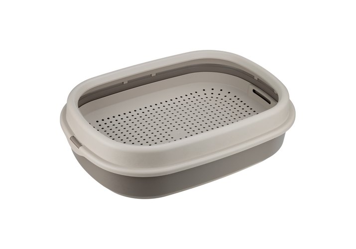 Лоток имеет эргономичную форму. Его верхний край закруглён, что предотвращает выпадение наполнителя при интенсивном использовании.
