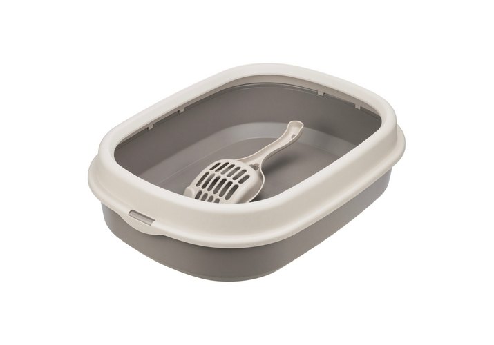Лоток имеет эргономичную форму. Его верхний край закруглён, что предотвращает выпадение наполнителя при интенсивном использовании. К лотку прилагается совок для уборки, он легко крепится на бортик лотка.