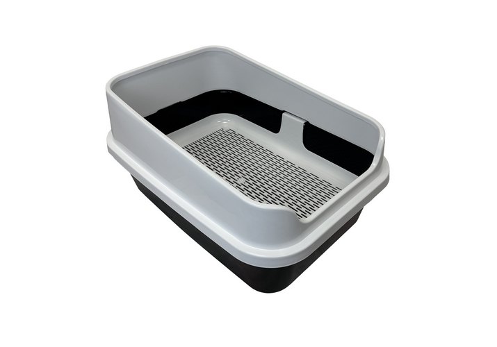 Homecat Комфорт плюс Туалет Хоумеэт для кошек с бортиком и сеткой черно-белый 50 х 36 х 25 см
