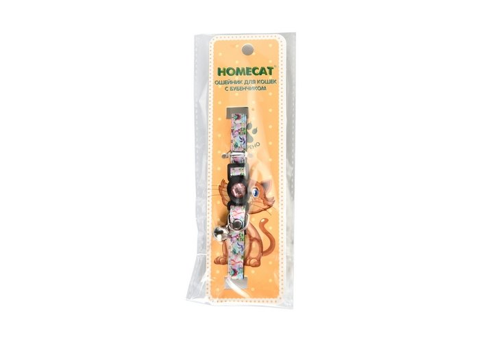 Ошейник для кошек с бубенчиком HOMECAT разработан с учётом анатомических особенностей котов и кошек. На ошейнике есть бубенчик, что сделает вашего питомца более заметным. Отстёгивается ошейник одним нажантием на кнопку пластикового карабина. Длинна ошейника регулируется от 20 до 30см. С продукцией HOMECAT комфортно и безопасно.