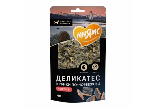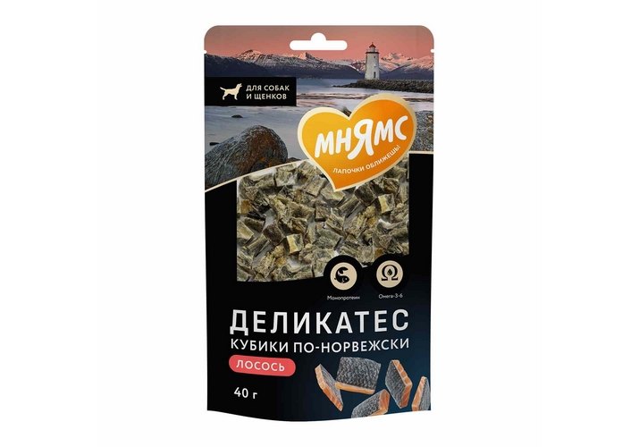 Мнямс Лакомство Деликатес для собак из лосося Кубики по-норвежски 40 г
