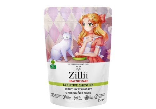 Zillii Healthy Care Sensitive Digestion Влажный корм Зилли для взрослых кошек с Чувствительным пищеварением с Индейкой в соусе (цена за упаковку) 85г х 24шт