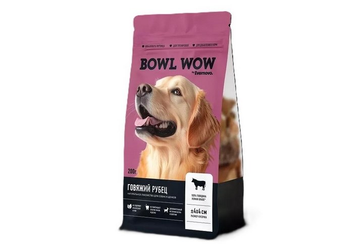 BOWL WOW Лакомство Боул Вау для взрослых собак и щенков всех пород Рубец говяжий 65 г