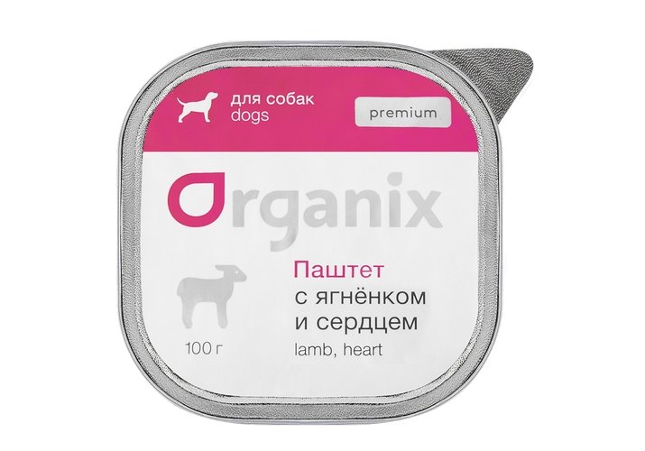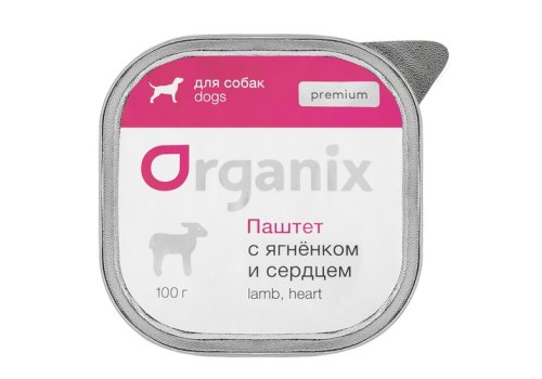 Organix Premium Консервы Органикс для собак 65% Паштет с ягненком и сердцем (цена за упаковку) 100г х 15шт