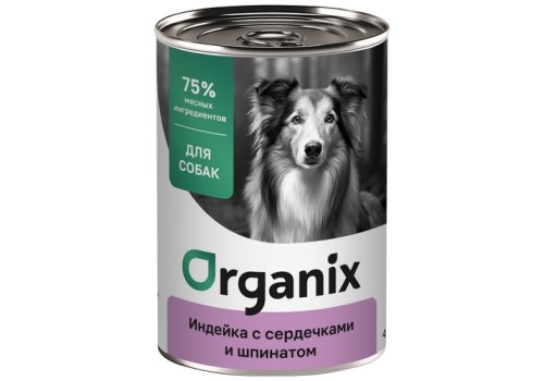 Organix Консервы Органикс для собак Индейка с сердечками и шпинатом (цена за упаковку) 400г х 6шт