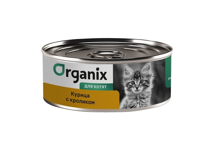 Консервы Organix с курочкой и кроликом - вкусный консервированный корм для котят, изготовленный из 100% свежего мяса.