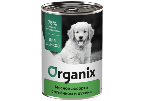 Organix Консервы Органикс для щенков Мясное ассорти с ягнёнком и цукини (цена за упаковку) 400г х 6шт