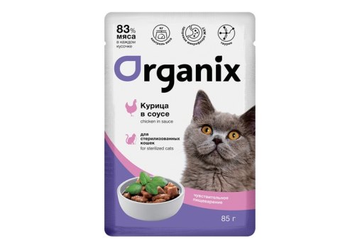 Organix Влажный корм Органикс для стерилизованных с Чувствительным пищеварением Курица в соусе (цена за упаковку) 85г х 24шт
