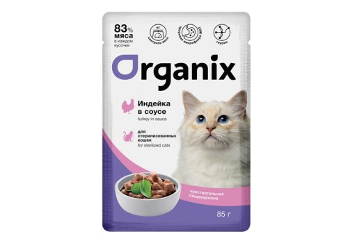 Organix Влажный корм Органикс для стерилизованных с Чувствительным пищеварением Индейка в соусе (цена за упаковку) 85г х 24шт