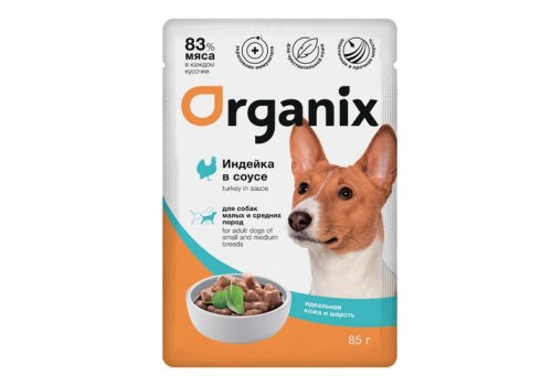 Organix Влажный корм Органикс для собак мелких и средних пород Идеальная кожа и шерсть Индейка в соусе (цена за упаковку) 85г х 24шт