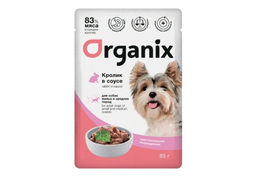 Organix Влажный корм Органикс для собак мелких и средних пород с чувствительным пищеварением Кролик в соусе (цена за упаковку) 85г х 24шт