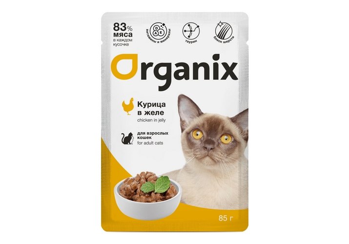 Organix Влажный корм Органикс для взрослых кошек Курица в желе (цена за упаковку) 85г х 24шт